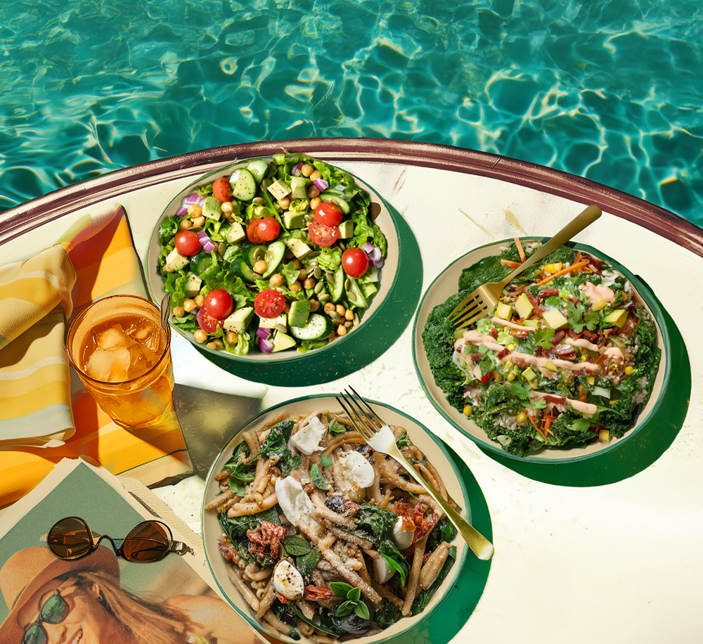 A summer salad with serious kick. Think charred chorizo strips, sweet corn kernels, avocado cubes and crunchy cabbage, all tossed through brown rice, kale and carrot. Add creamy French dressing, Green Goddess, a touch of chilli mayo and a sprinkle of parmesan and coriander, and you’ve got flavour that brings the fiesta to lunch.